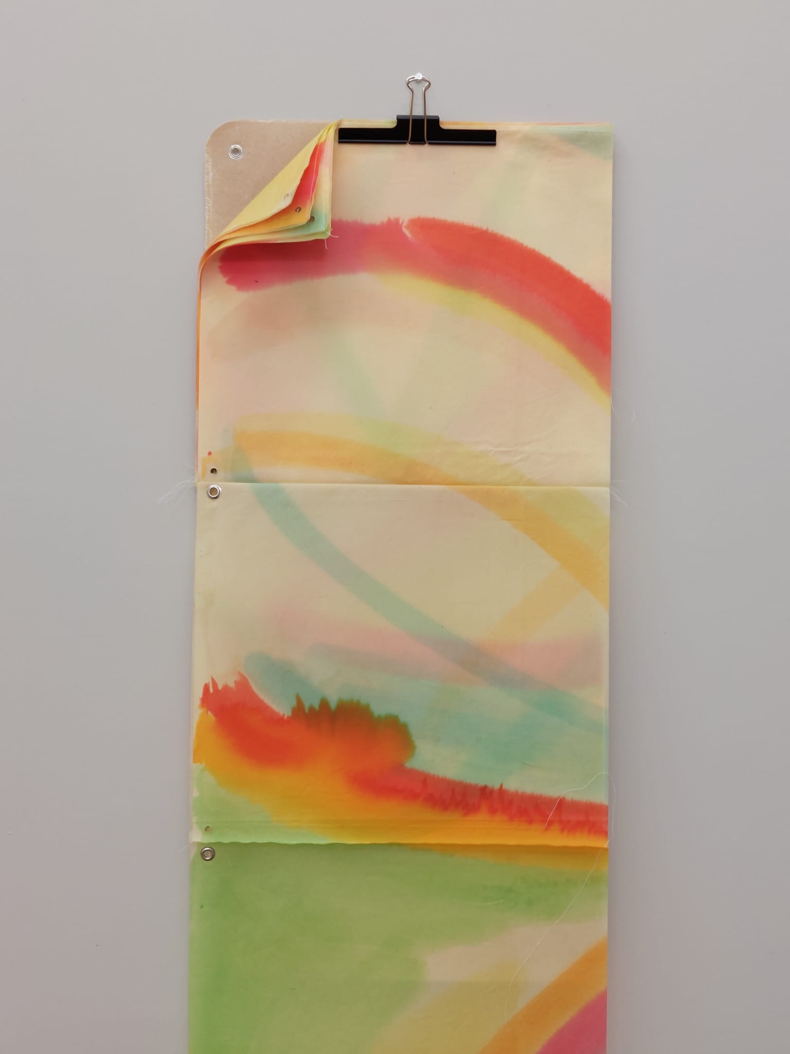 Dye on oilcloth, wax canvas sleeve